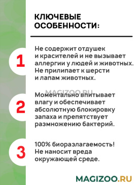 - Моментально впитывает влагу и обеспечивает абсолютную блокировку запаха и препятствует размножению бактерий.