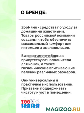 ZooНяня - средства по уходу за домашними животными. Товары российской компании созданы, чтобы обеспечить максимальный комфорт для питомцев и их владельцев.