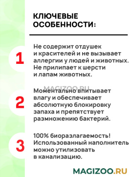 - Моментально впитывает влагу и обеспечивает абсолютную блокировку запаха и препятствует размножению бактерий.