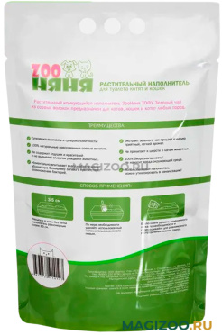 Растительный комкующийся наполнитель ZooНяня ТОФУ Зеленый чай предназначен для котов, кошек и котят любых пород. Произведен из спрессованных соевых волокн без красителей, ароматизаторов и химических добавок.