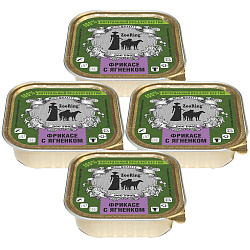 Состав: мясо и субпродукты не менее - 80% (в том числе говядина - не менее 10%, мясо ягненка - 3%), бульон, клетчатка.