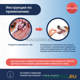 Необходимое количество геля нанести на внешнюю и внутреннюю поверхность зубов непосредственно из тубы или при помощи ватной палочки, чистого пальца. Для большего эффекта можно воспользоваться зубной щёткой и круговыми движениями обработать зубы. Не требует смывания. Зубной гель наносят 1−3 раза в неделю. У чувствительных животных в очень редких случаях возможны аллергические реакции. В этих случаях применение средства прекращают.
