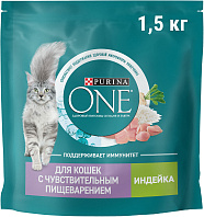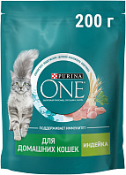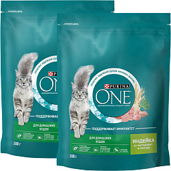 Сухой корм PURINA ONE для взрослых кошек, живущих дома, с индейкой и цельными злаками (0,2 + 0,2 кг)