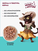 На каждой упаковке красуется не просто фото, а смешной отрисованный персонаж: собака, кошка или кот в костюме а-ля «Дикий Запад». Продукт так и хочется взять в руки и познакомиться поближе с героями, ведь они получились не шаблонными, а живыми, весёлыми явно напоминающими собственных питомцев.