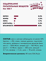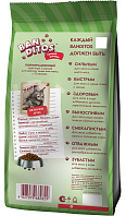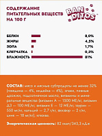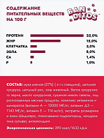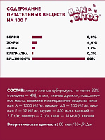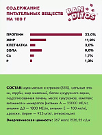 Во влажных — ещё имеются добавки лосося и кролика. Доля мясного микса в составе чётко указана, и путём нехитрых подсчётов становится очевидно, что процент животных компонентов в сухих кормах для кошек (если сложить мясо, жиры, гидролизованный белок и печень) — порядка 53−55 %, а в кормах для собак — 45−47 %.