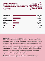 В сухих рационах это сочетание курицы, индейки, ягнёнка, говядины и субпродуктов.