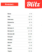 - Blitz Classic. Обеспечивают животных необходимыми витаминами, белками и жирами. Включают дегидрированное мясо курицы, животный жир, кукурузу и рис.
