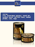 Корма содержат мясные и рыбные ингредиенты, овощи, ягоды и злаки. Без синтетических добавок. Не содержит искусственных красителей, ароматизаторов и консервантов; используются натуральные антиоксиданты (токоферолы, экстракт розмарина).