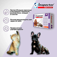 INSPECTOR — это серия уникальных ветеринарных препаратов, созданных и разработанных совместно с лабораторией Veterinary Bio (Германия). Безупречное европейское качество и активные компоненты делают препараты поистине эффективными и безопасными для Ваших любимцев!