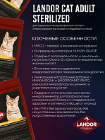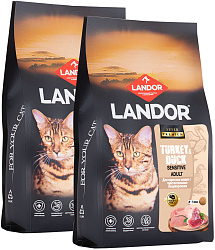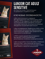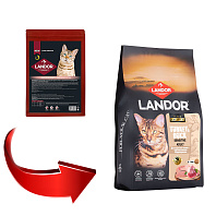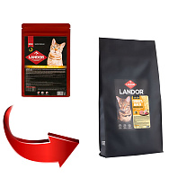 Продукция Landor для кошек включает в себя сухие корма для разновозрастных кошек и ряд консервированных кормов, как полнорационных, так и тех, что могут быть использованы в качестве дополнительного питания.