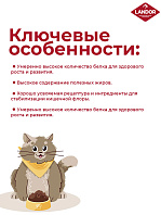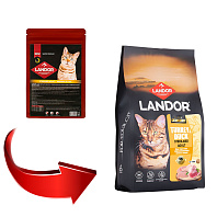 Продукция Landor для кошек включает в себя сухие корма для разновозрастных кошек и ряд консервированных кормов, как полнорационных, так и тех, что могут быть использованы в качестве дополнительного питания.