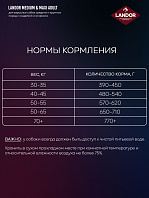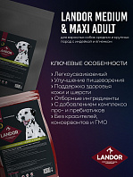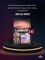 Торговая марка Landor выпускает сухие корма для собак всех породных и размерных категорий, а также ряд полнорационных влажных кормов для собак различных возрастных групп и лакомства для собак.
