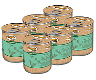 Консервы не содержат: субпродукты, злаки, глютен, гормоны, антибиотики, ГМО, сою и ароматизаторы.