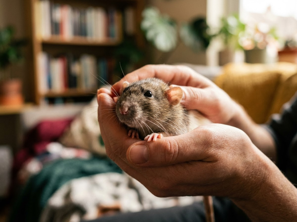 Уход за ручной крыской несложный. Нужно поддерживать жилище питомца в чистоте, следить за самочувствием животного, кормить его, быть ему верным другом.