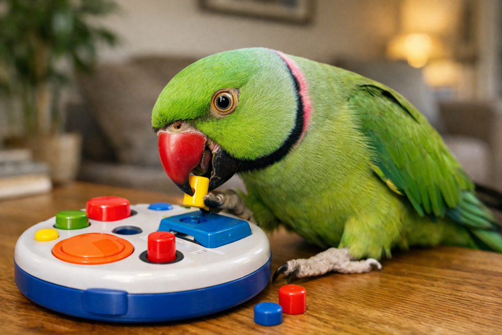 Среди ученых есть мнение, что уровень IQ у крупных попугаев соответствует интеллекту четырехлетнего ребенка. Они справляются с головоломками, некоторые особи сортируют предметы по форме и цвету, читают стихи, считают.