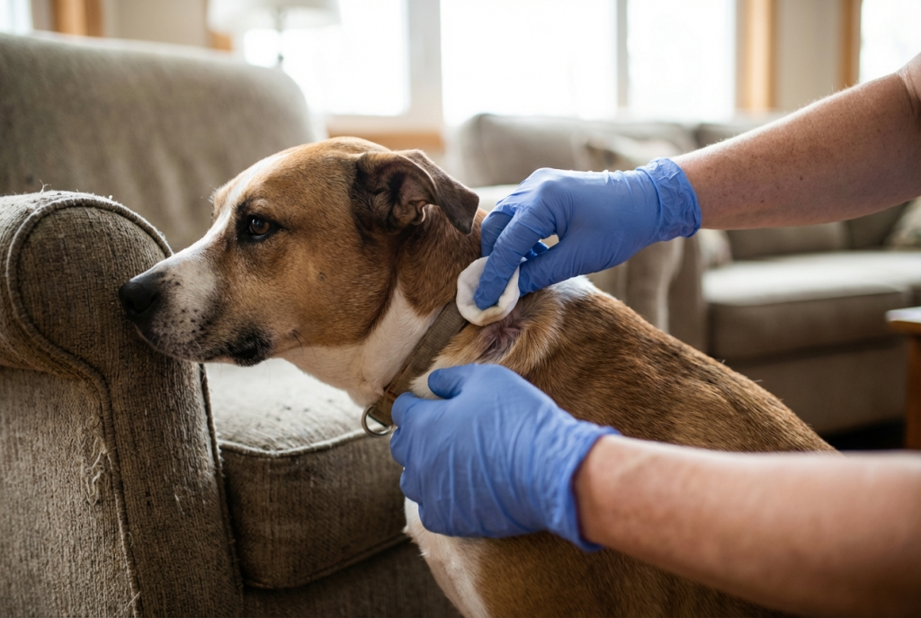 Как лечить собаку от лишая, если она расчесывает пораженные места или пытается слизать нанесенную мазь? Такое поведение может осложнить течение заболевания.