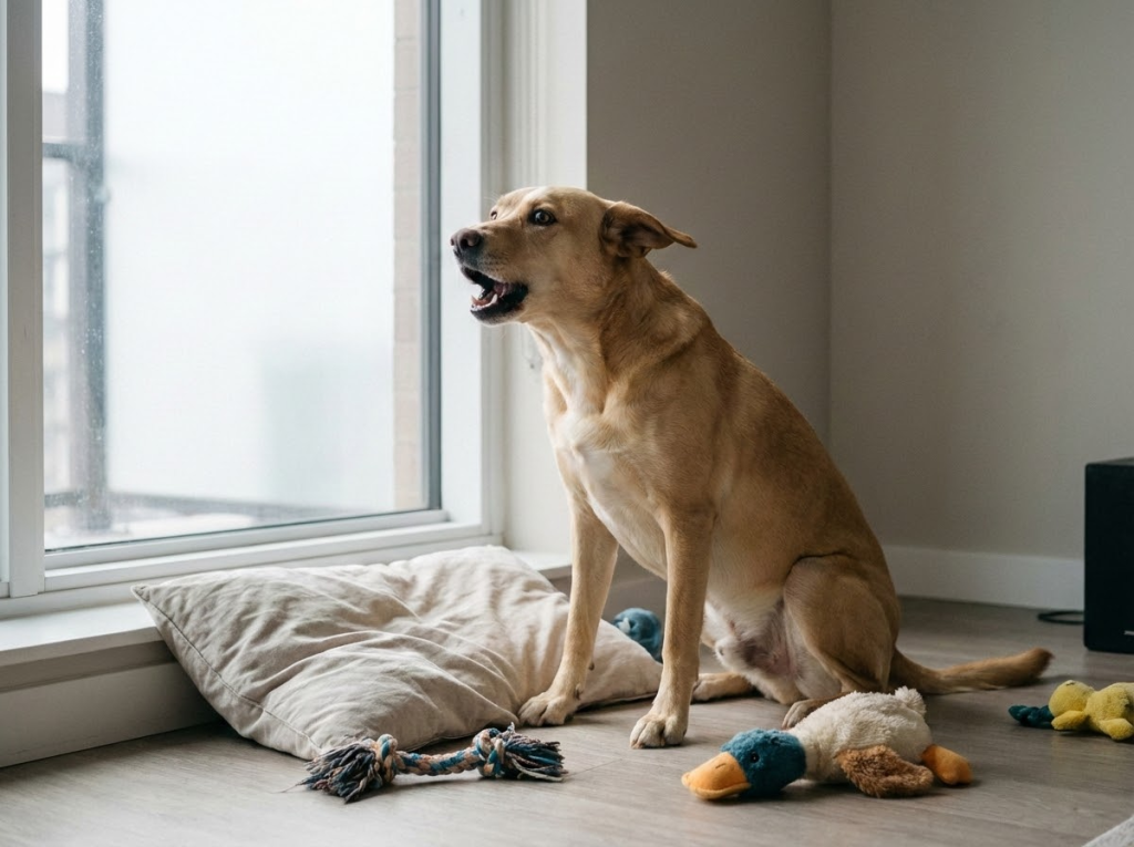 - Болезнь. Если собака лает без видимой причины, возможно, ее беспокоит боль или зуд.