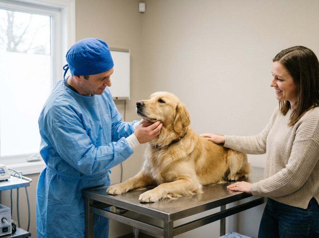 Если у собаки на коже или под ней появилась шишка, отметьте это место для себя и наблюдайте за ним. Дополнительные фотографии и записи позволят специалисту точнее определить характер заболевания. Поэтому следующий шаг — обращение в ветеринарную клинику.