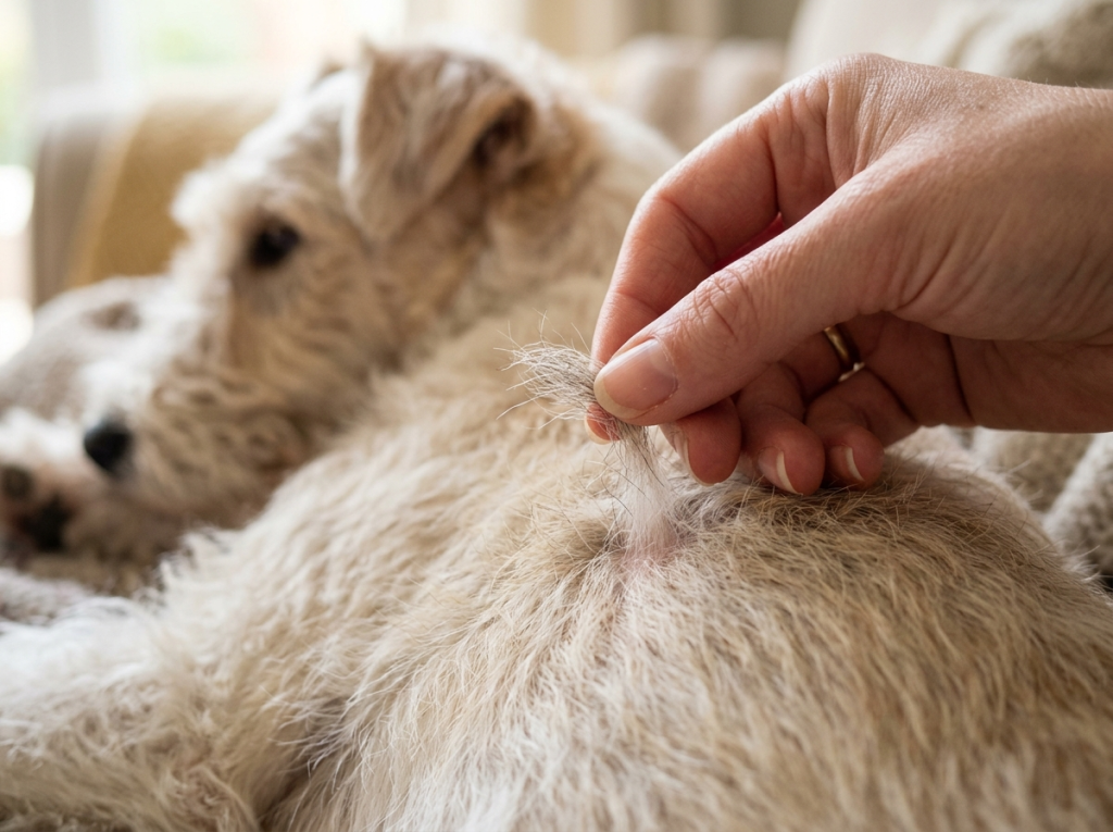 Если у собаки жесткая шерсть, для поддержания ее хорошего состояния, отмершие шерстинки нужно удалять. При линьке у них выпадает незначительное количество шерсти. Мертвый остевой волос остается в луковицах, препятствуя нормальному росту и обновлению шерсти. Без правильного ухода через несколько месяцев пес будет выглядеть взъерошенным и неопрятным, появятся колтуны. Они некрасиво выглядят, создают благоприятные условия для вредных микроорганизмов (грибковые инфекции, бактерии, вызывающие дерматит).